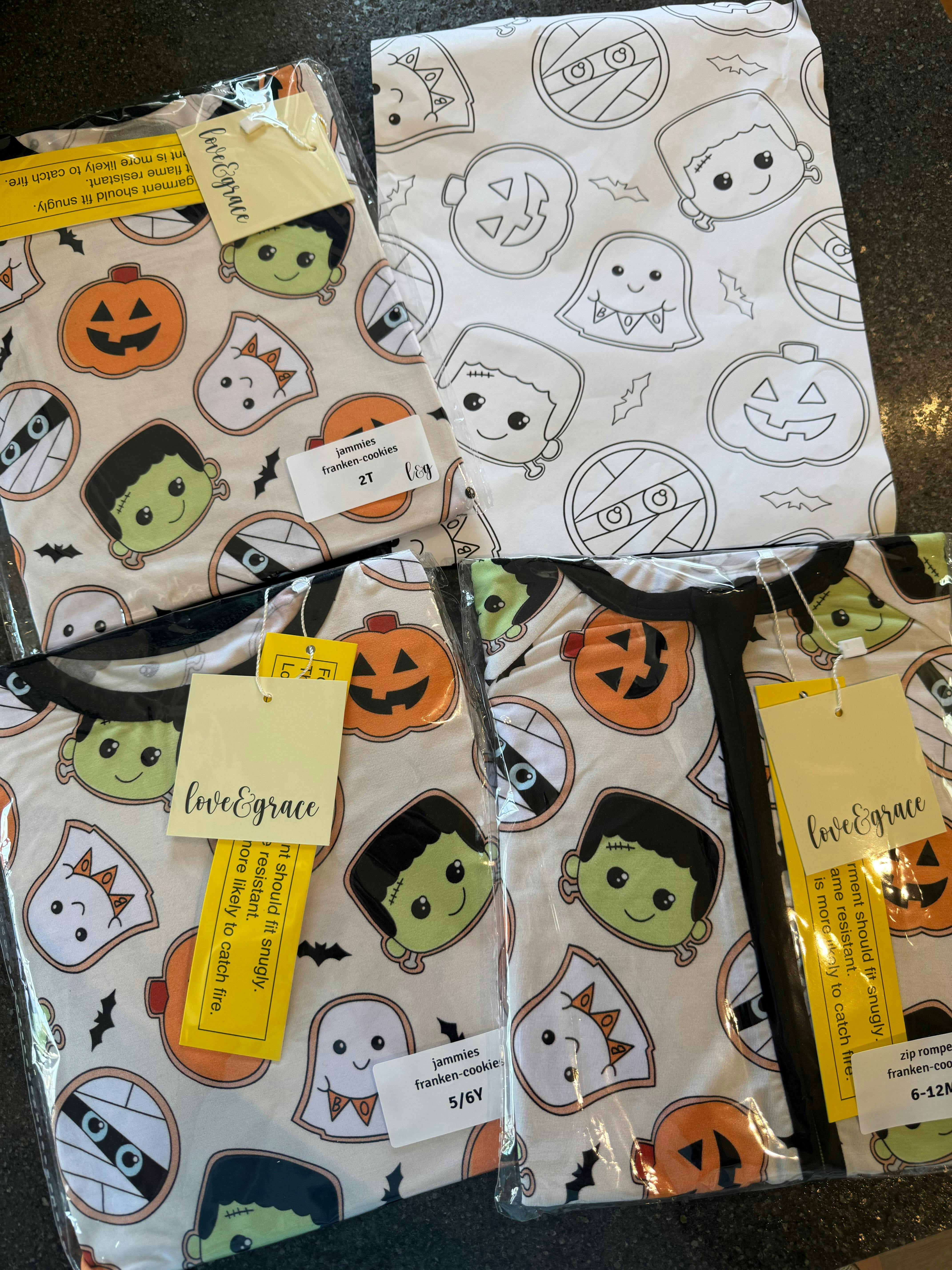 I received our franken- cookies two piece pjs and we love them. They are a little big in the waist but it’s nice that my little guy will have room to grow into them instead of them being too small. Look forward to buying from love & grace in the future.